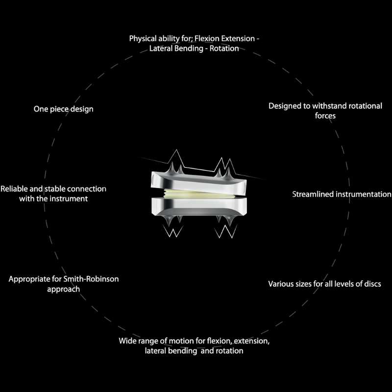 - Amplio rango de movimiento para flexión, extensión, flexión lateral y rotación.